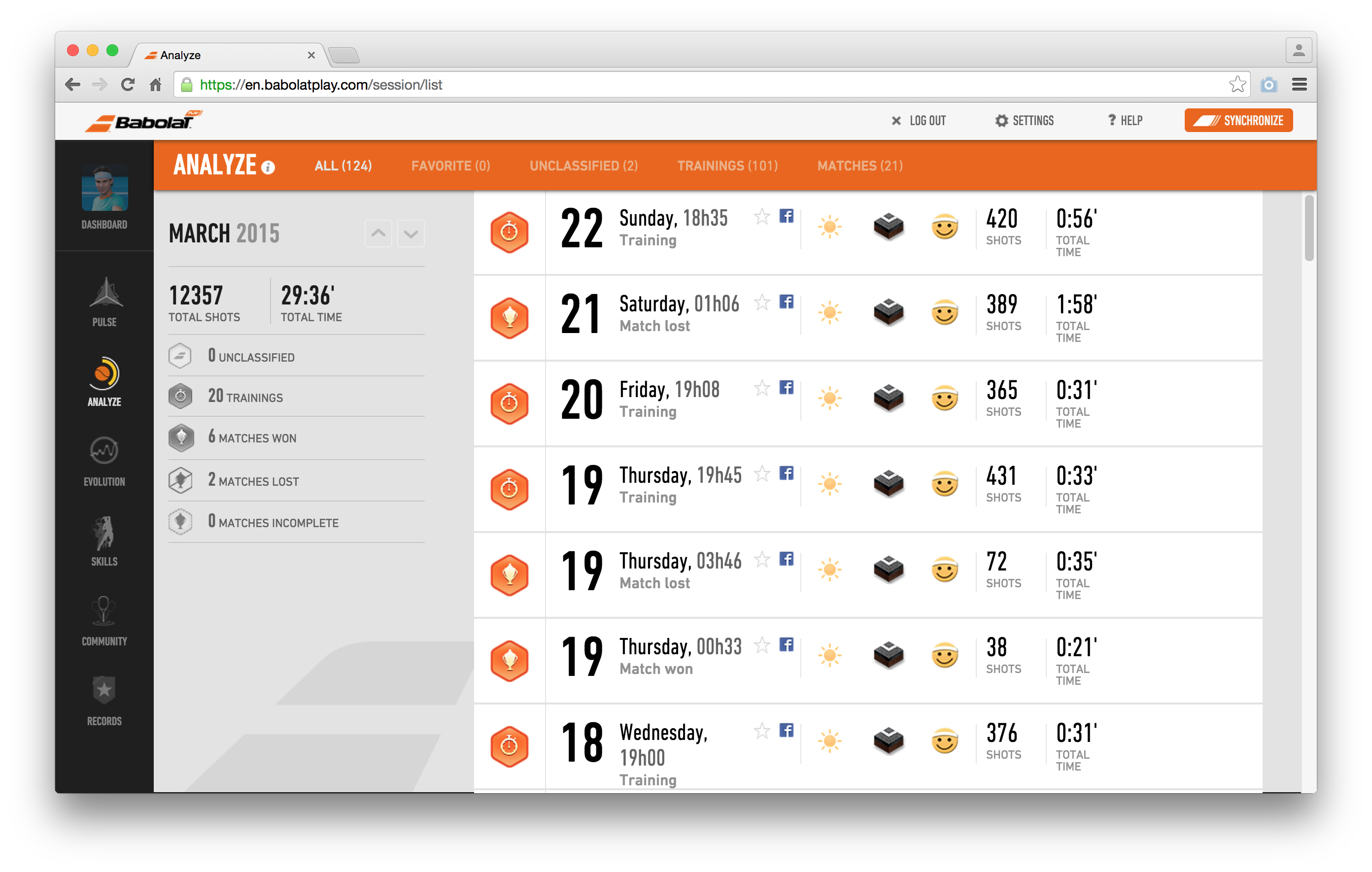 Lectura simple : En el « activity wall » puedo ver que desdeenero, Rafa ha jugado X sesiones (entre ellas, X entrenamientos), ha dado X golpes y ha pasado X horas en la pista.