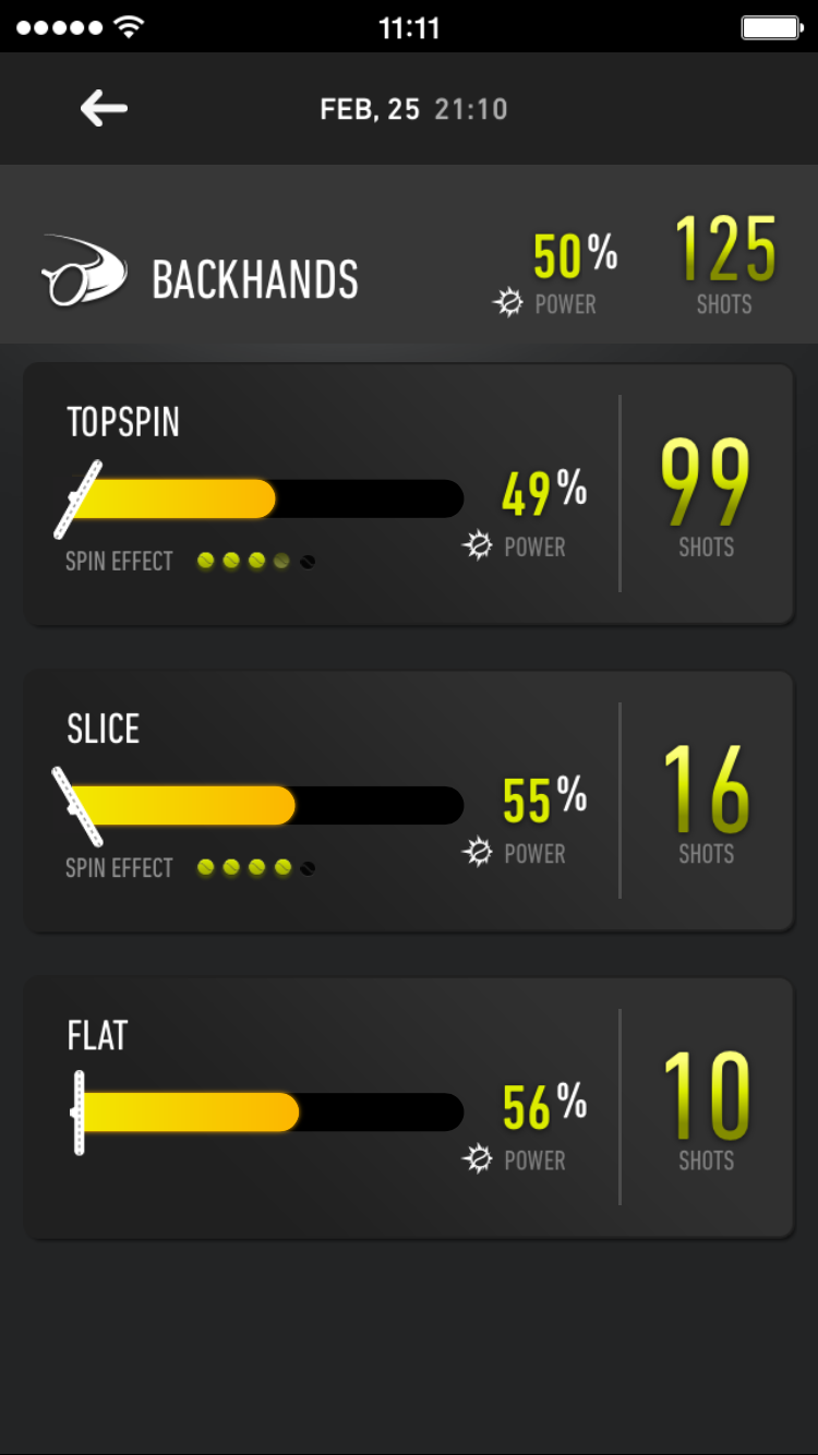 Lectura simple : Has efectuado X golpes liftados, X golpes cortados y X golpes planos.