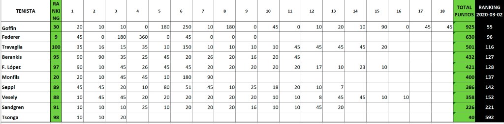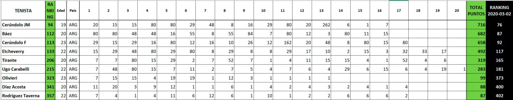 Por eso es muy importante ver la sumatoria de estos jugadores en lo que sería un ranking regular, transpolados esos puntos al primer escalafón de marzo de 2020.